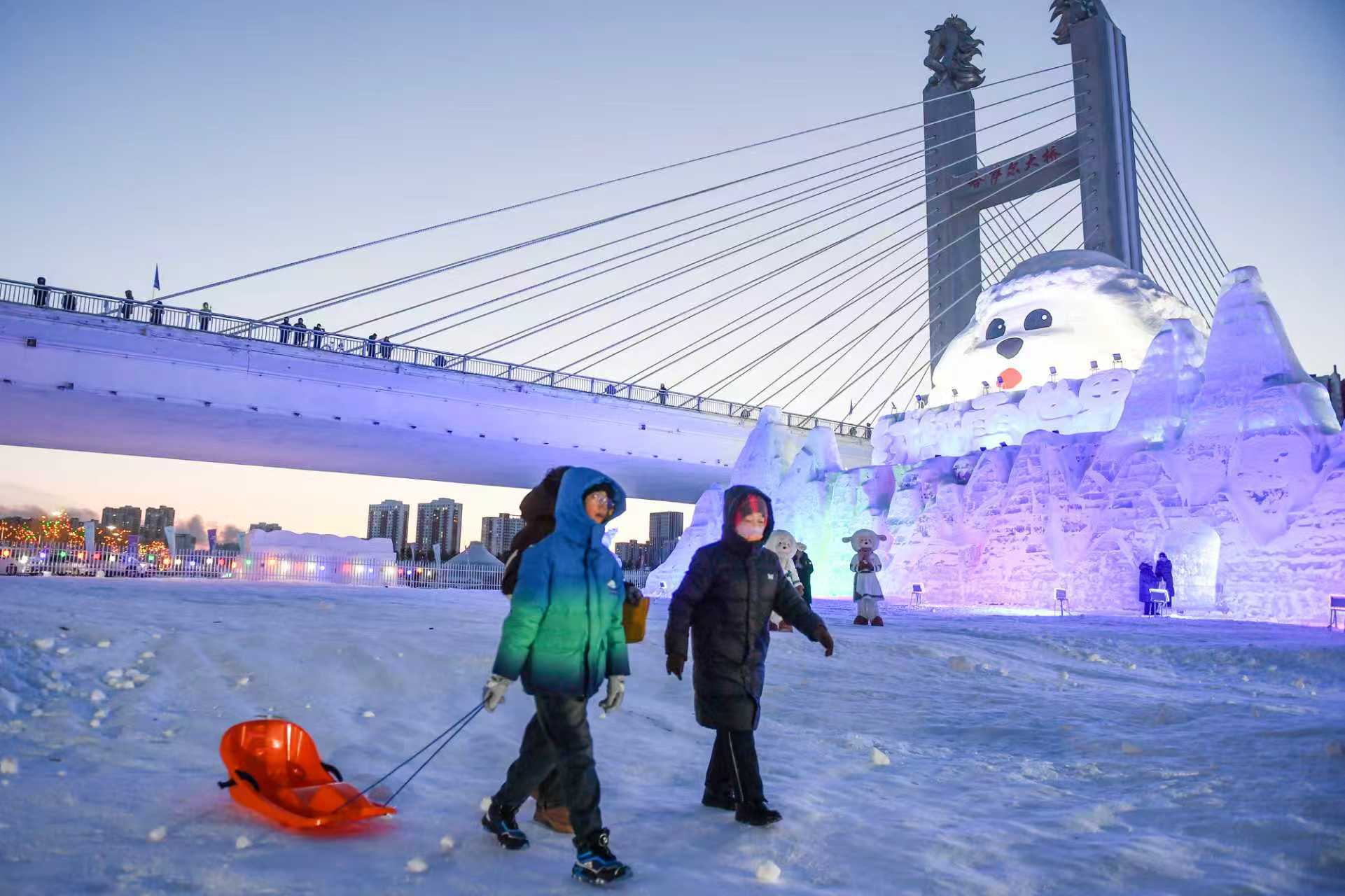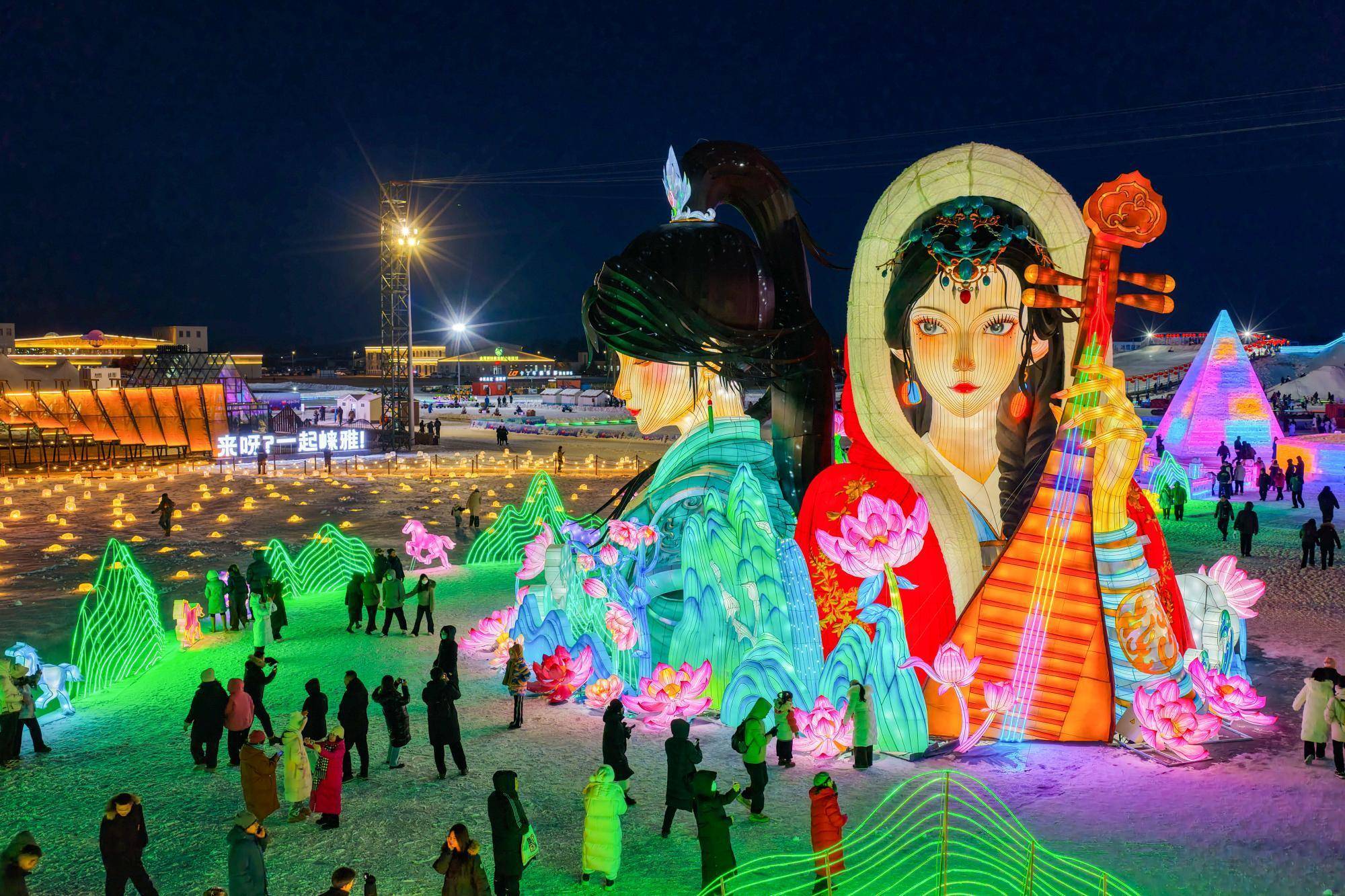 2025年12月31日,呼和浩特大黑河军事文化乐园开园,网友评价“配置很顶!”冰雕区各式创意冰雕汇聚,“冰长城”气势尤为恢宏;彩灯区,花木兰与王昭君“双娇辉映”,搭配打铁花、NPC互动、企鹅巡游等特色活动,开园当日便跻身内蒙古冰雪场所“顶流”。