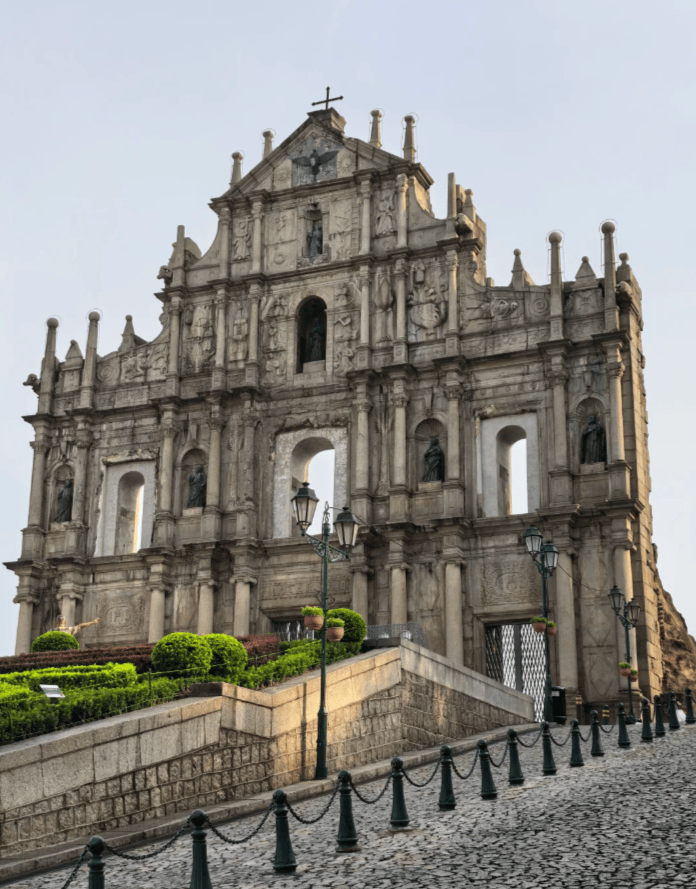 经港珠澳大桥乘车入澳(车程约40分钟,沿途可停观景台拍照)。第一站自然是大三巴牌坊,阿兵带我们走右侧小巷,避开人流拍出仰角大片。随后登炮台山看老城全景,再到金莲花广场和妈祖庙,感受澳门多元信仰的交融。澳门公交可用澳门通或微信乘车码,但阿兵建议我们用电召APP打车,价格透明且常有优惠。