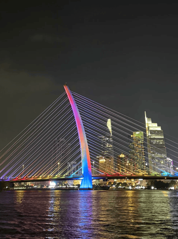 越南美食是这次旅程的另一大亮点。我们品尝了地道的越南河粉(Pho),汤底清香,米粉滑嫩,配上新鲜 herbs,味道绝佳。春卷(Goi Cuon)也是必尝之选,透明的米皮包裹着虾肉和蔬菜,蘸上鱼露,清爽可口。此外,越南咖啡(Ca Phe)香浓醇厚,尤其是冰咖啡,在炎热的天气里格外解暑。还有法式面包(Banh Mi)、牛肉火锅(Lau Bo)等地道美食,每一口都让人回味无穷。导游燕子还带我们尝试了当地街边小吃,让我们更深入地体验越南的饮食文化。