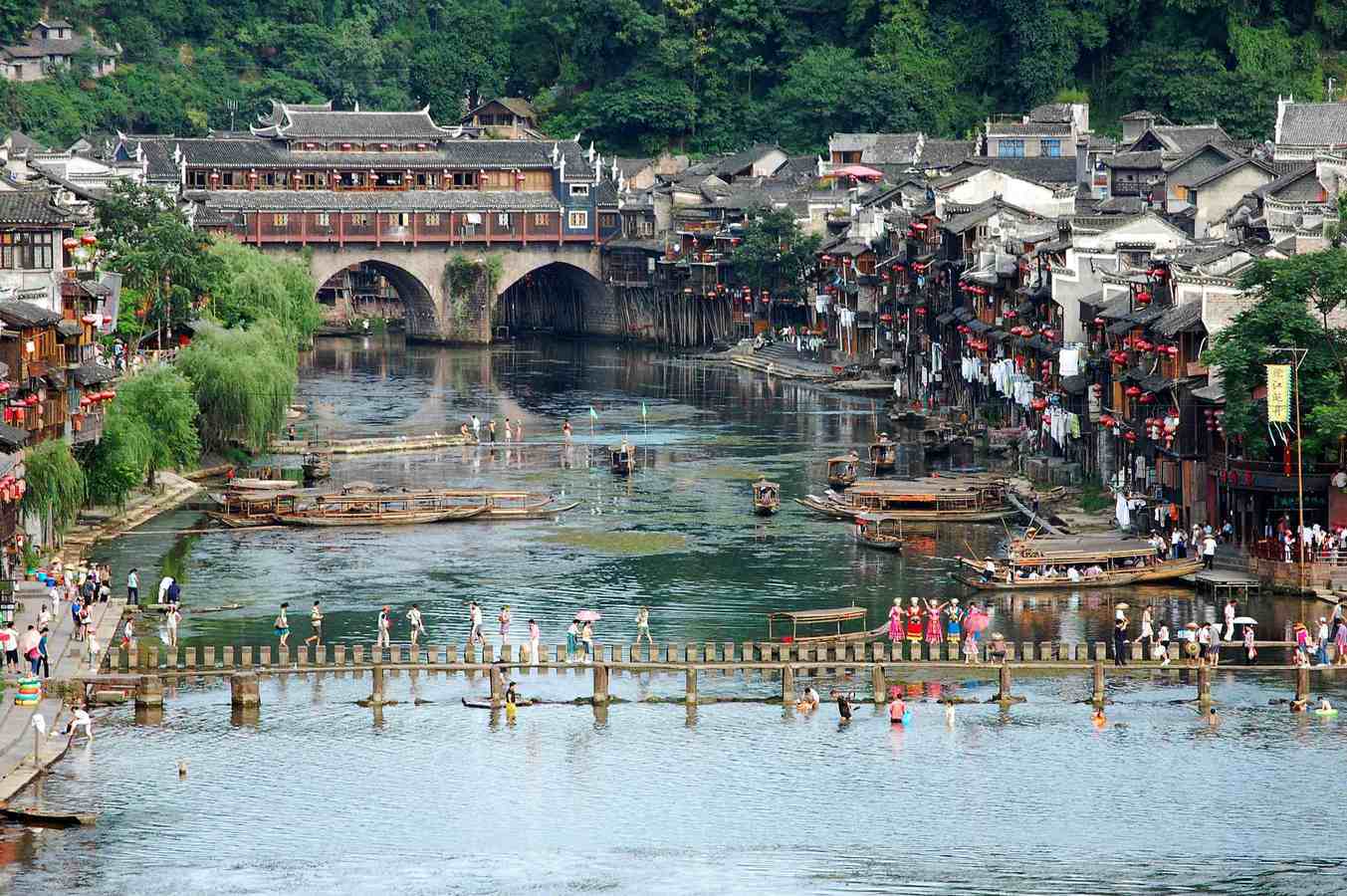 •路线:上午自由探索古城(沈从文故居、东门城楼、虹桥风雨楼)→下午可选择体验华铁国旅推荐的独家项目:苗寨风情体验(含长桌宴、苗族歌舞)。