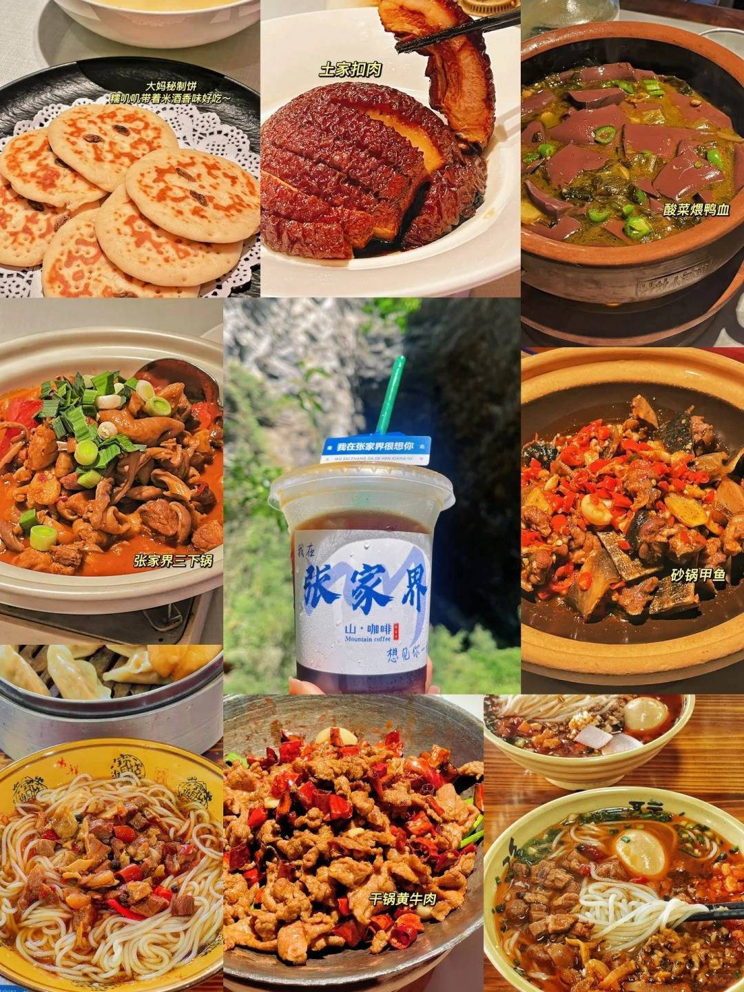张家界美食:三下锅是当地招牌菜,肥肠、腊肉、牛杂一锅炖,香辣下饭;土家腊肉、葛根粉、猕猴桃汁也值得一试,口味可调整适合小朋友。