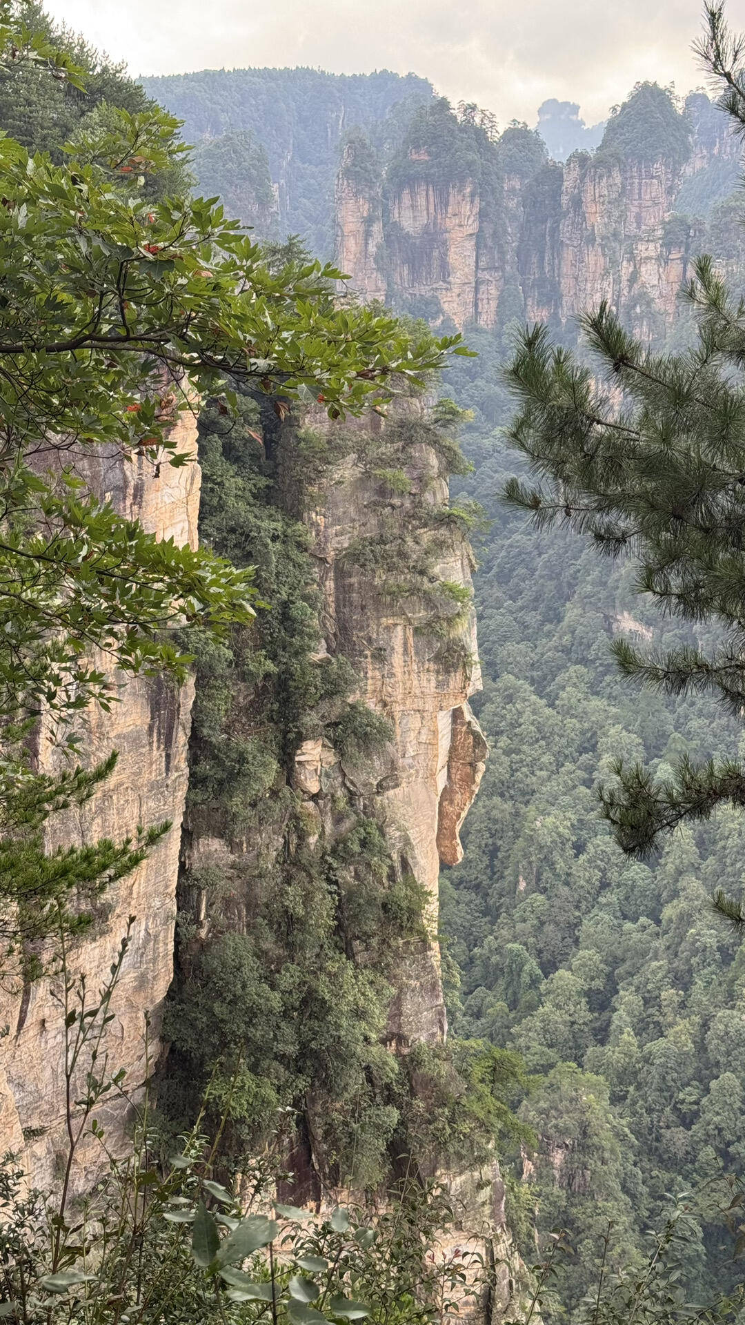 周六清晨6点半,手机就收到小纤的消息:“我在酒店楼下啦,带了早餐~”下楼一看,她手里拎着保温袋,里面是刚买的热豆浆、肉包,还有用荷叶包着的蒿子粑粑。咬一口蒿子粑粑,艾草的清香混着糯米的软糯,比在超市买的速冻款香多了。7点多到森林公园,门口还没什么游客,小纤笑着说:“咱们赶了个早,等会儿旅行团来了,拍照就得排队咯。”黄石寨索道上升时,老妈扒着玻璃不停感叹:“这山怎么长的呀,跟画里一样!”步行下山时,小纤指着“夫妻岩”讲土家族情侣的故事,老爸听得入迷,还追问“后来呢后来呢”,像个好奇的小学生。袁家界的乾坤柱前,小纤蹲在地上帮我们调整三脚架高度:“低一点拍,能把云海和石柱都框进去。”拍出来的全家福,亲戚们都说像旅游杂志封面。杨家界的乌龙寨石阶又窄又陡,老妈走得腿发软,小纤赶紧把自己的登山杖递过去,还在前面扶着她:“阿姨慢点,踩稳这步,前面就有平台歇脚。”等登顶看到天波府,老妈对着群山大声喊“张家界我来啦”,那股子兴奋劲儿,比我这年轻人还足。